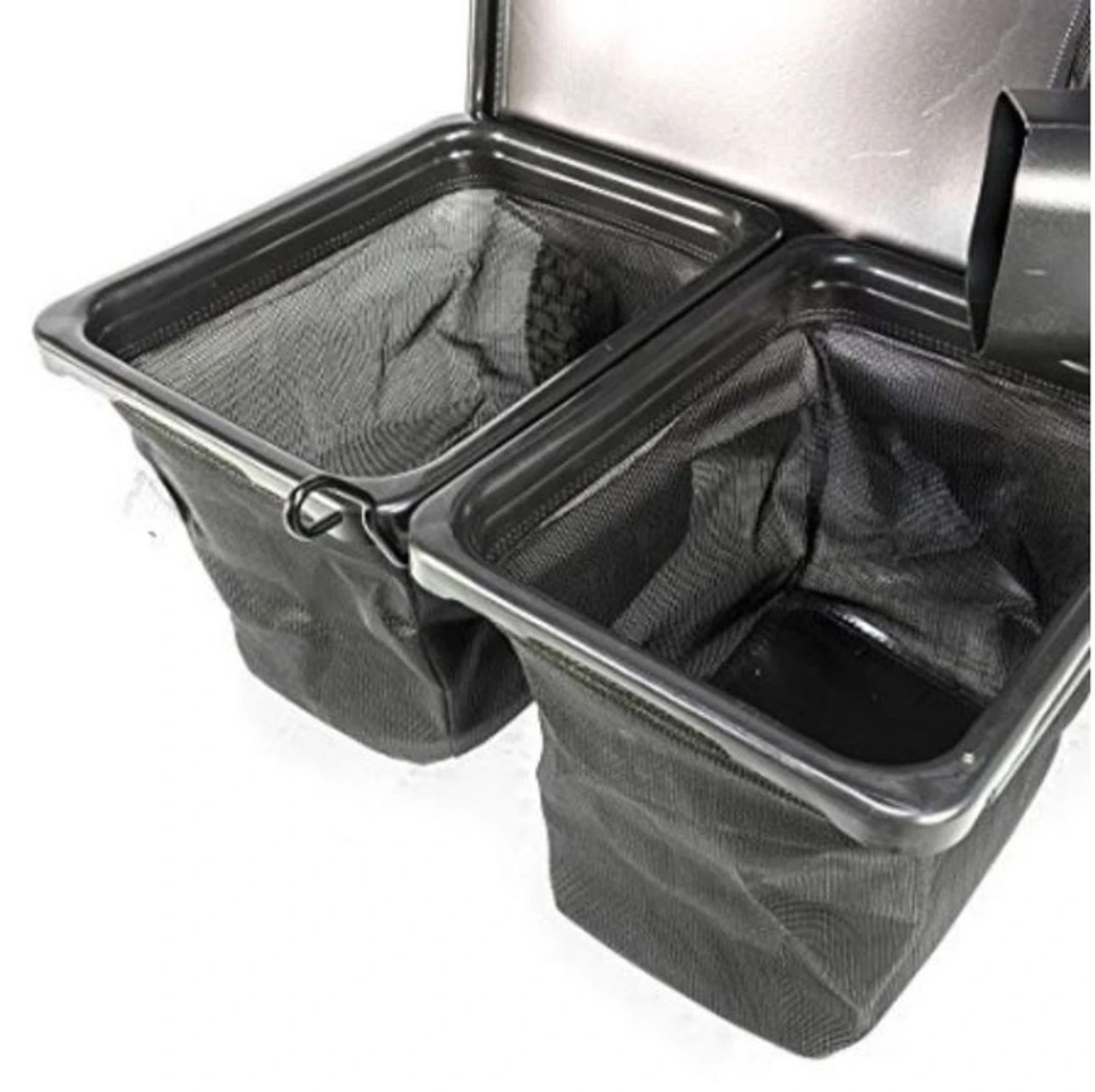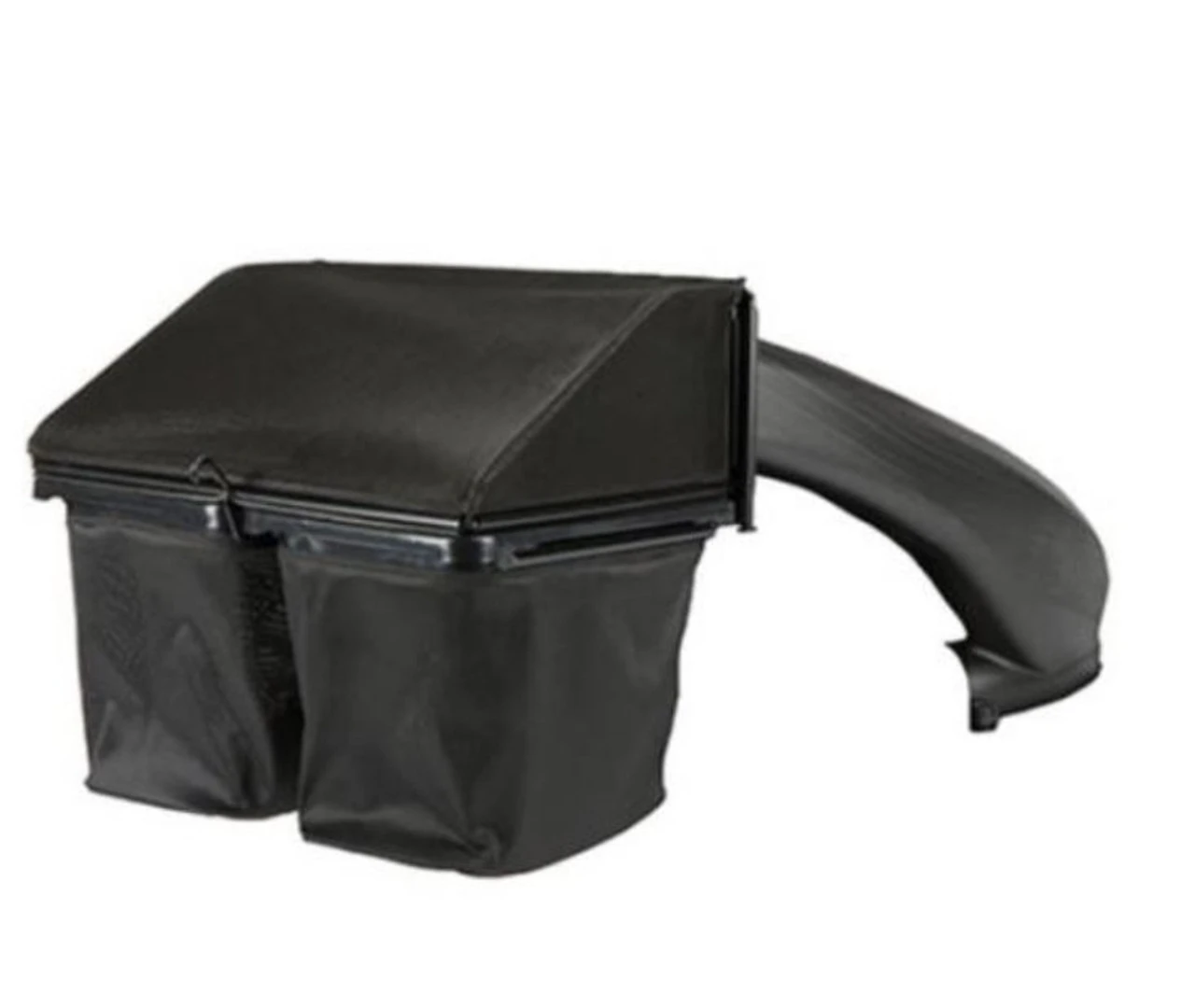 The kit fits MTD Brands 30″ rear engine mini riders. It contains two vented nylon bags, hood, chute, brackets, hardware and counter-weight. The attachment has a 3.25-bushel capacity and fits models from 2013 and after.