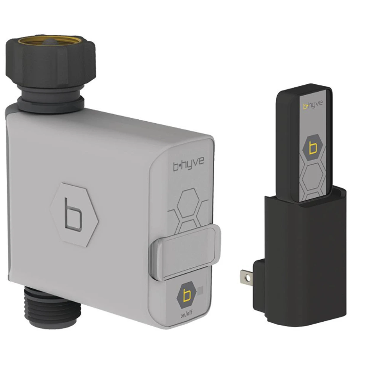 The B-hyve Smart Hose Faucet Timer with Wi-Fi hub gives you complete control over hose faucet watering from your smart device. No more dead plants because you forgot to water them. No more soggy lawns because you forgot to turn the water off. Download the Android or iOS B-hyve App or use your computer with a Wi-Fi connection to program your timer. The Wi-Fi connection allows you to make changes to your programming from anywhere and allows the timer to receive instant weather updates. With instant updates, the timer will adjust the watering scheduling delivering just the right amount of water to your plants; this avoids wasting water with the added benefit of saving on your water bill. 1-touch watering is available on the timer so you can water without using your phone. Add on additional smart valves to create multiple watering zones in your yard, these timers will network together to boost the signal strength without the use of repeaters.